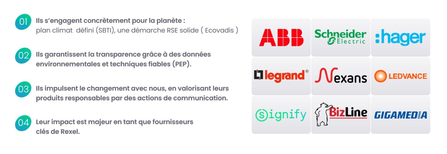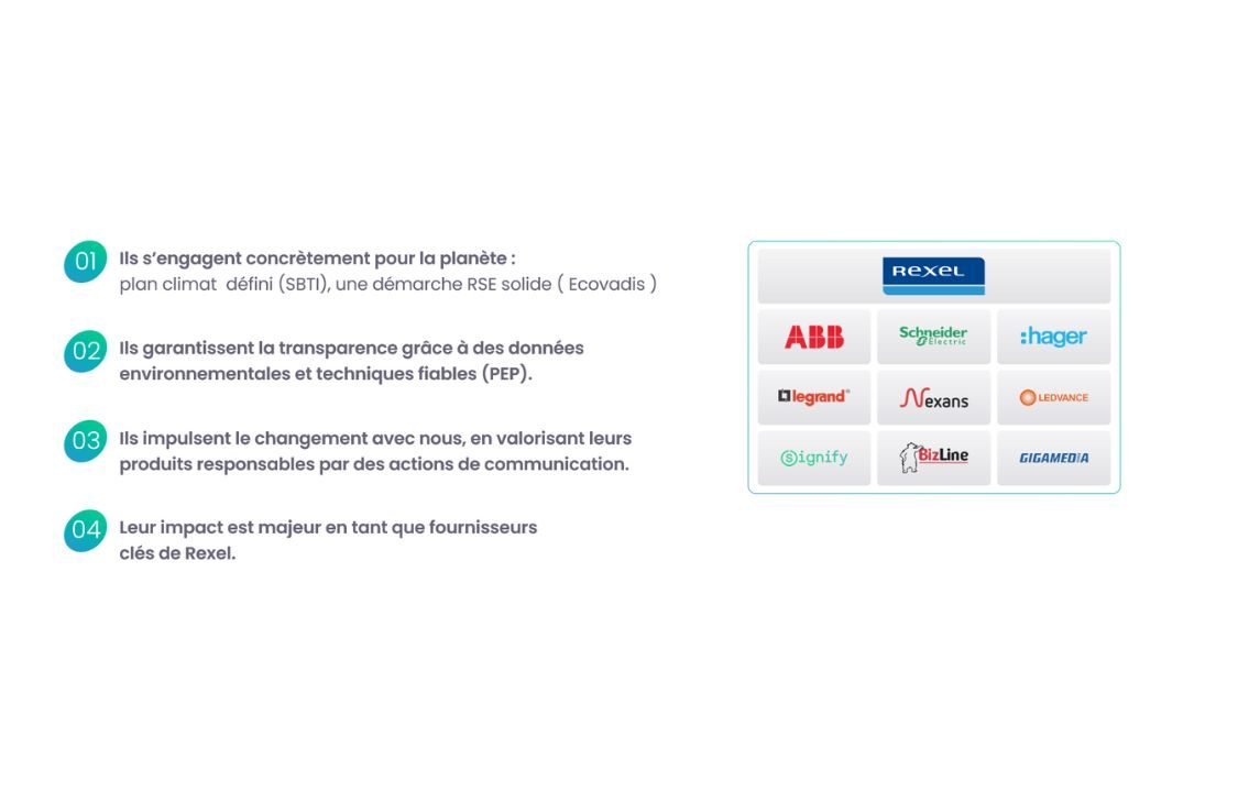 Figurant parmi les principaux fournisseurs de Rexel dans le monde, les participants au programme font preuve d'un engagement avancé en matière de progrès environnementaux, sociaux et de gouvernance.